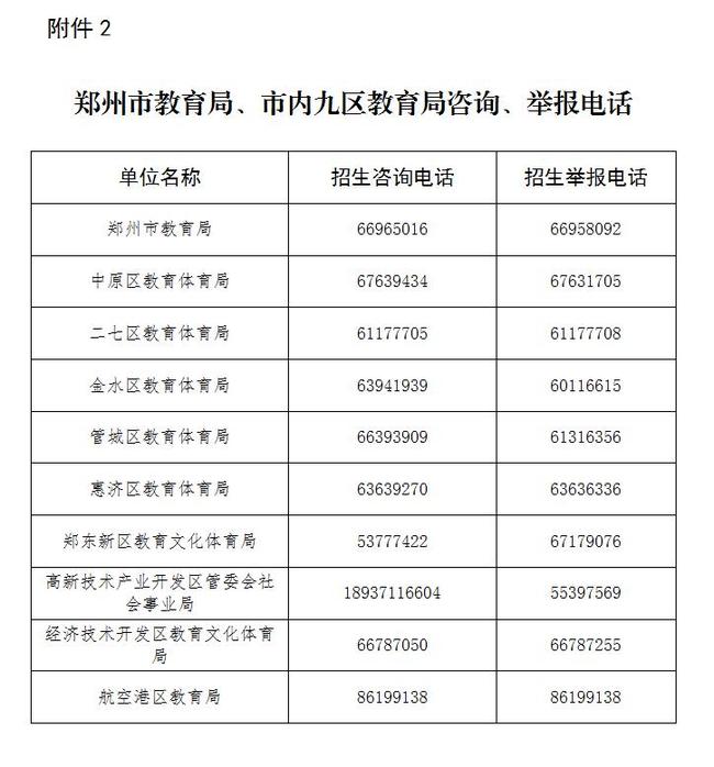 2. 鄭州市教育局、市內(nèi)九區(qū)教育局咨詢、舉報電話