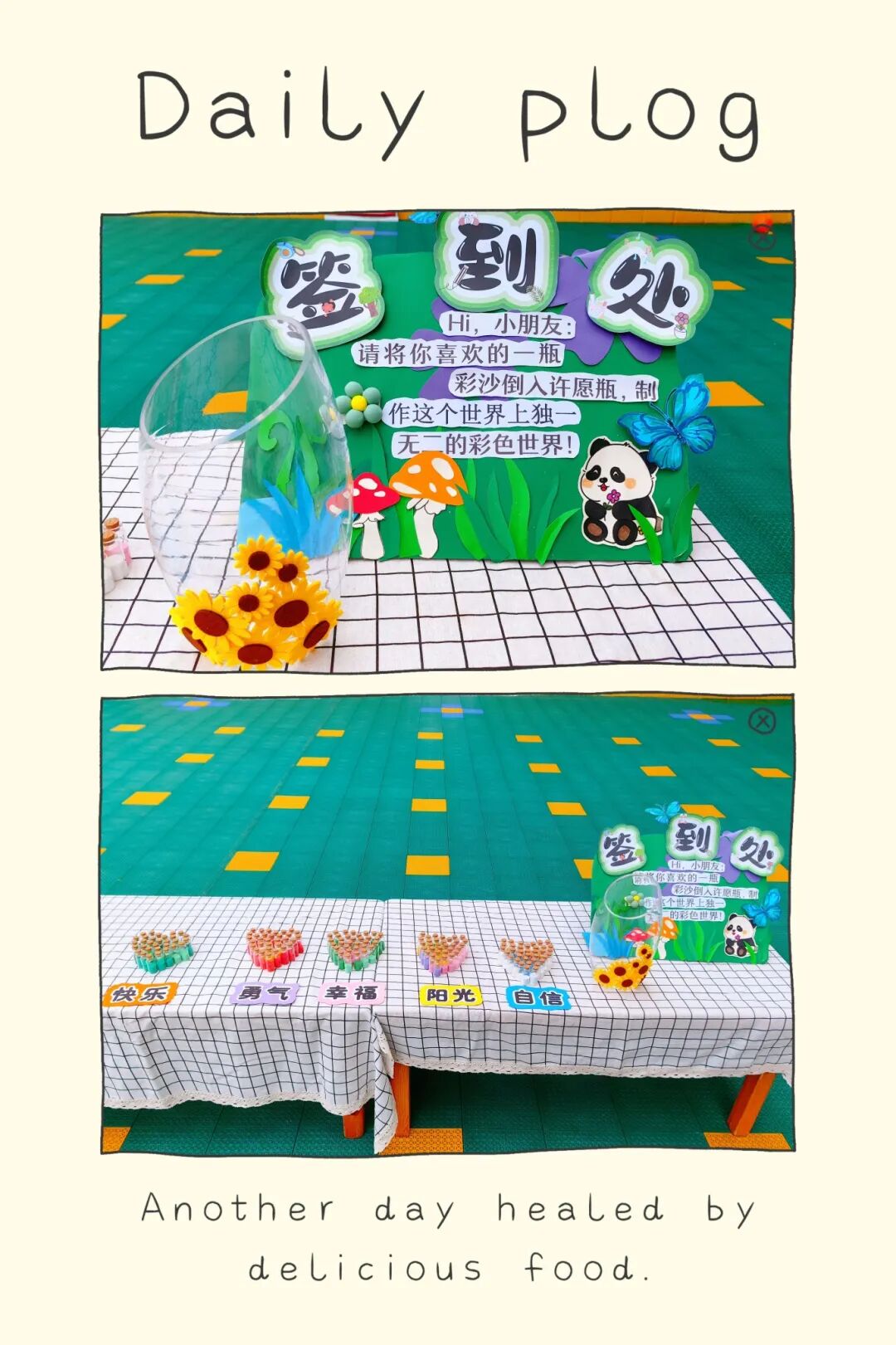 看著彩沙緩緩流下,匯聚成絢麗的圖案,寓意著每個孩子都是集體中獨一無二的一份子,共同匯聚成新學期多彩的畫卷。
