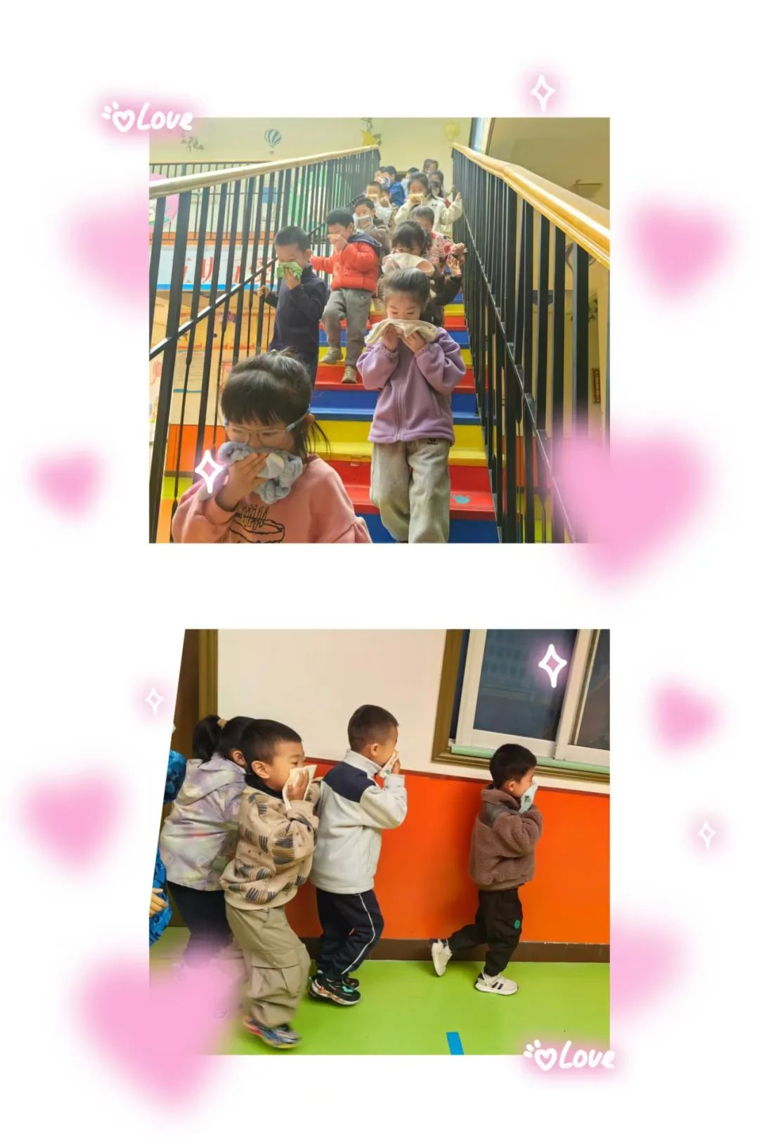 2024年11月6日上午10點(diǎn),隨著消防警報(bào)聲的響起,演練正式開始。在各班教師的指引下,孩子們迅速進(jìn)入狀態(tài),按照既定的疏散路線,手捂住口鼻,低頭彎腰,快速而有序地撤離到幼兒園的安全區(qū)域。