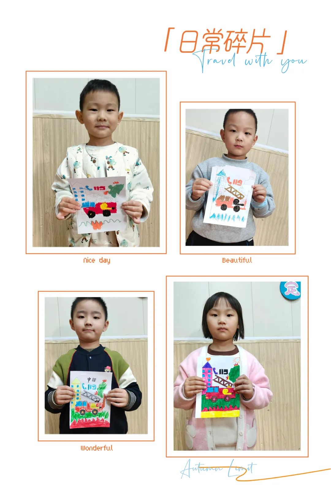 活動(dòng)過(guò)后,孩子們用自己的方式記錄下他們的收獲。他們用畫筆描繪出所學(xué)習(xí)的消防知識(shí)和了解到的消防器材。