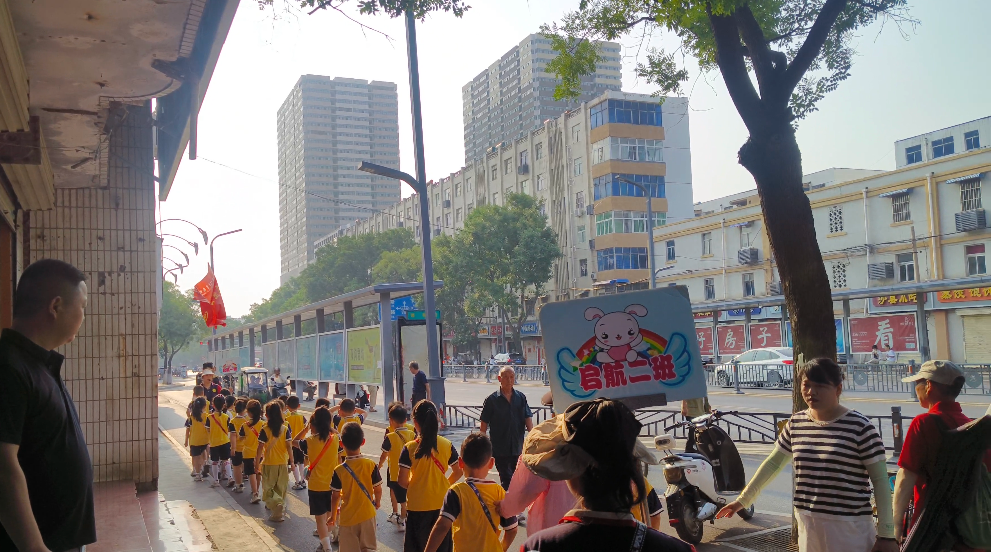 孩子們排著隊手拉手,在一路的期待下,終于來到了解放東路第二小學。