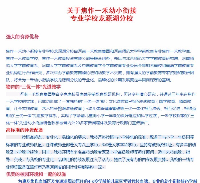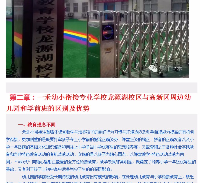 關(guān)于焦作一禾幼小銜接 專業(yè)學(xué)校龍源湖分校
