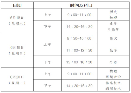 我市2021-2022學年度第二學期普通高中學業水平合格性考試將于2022年6月18日-20日進行。具體考試安排如下: